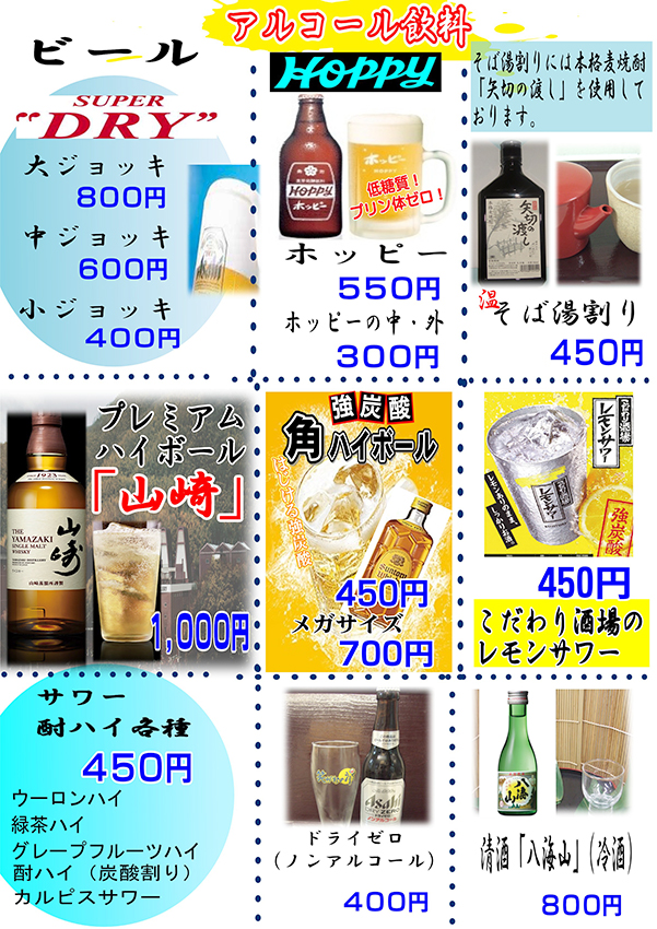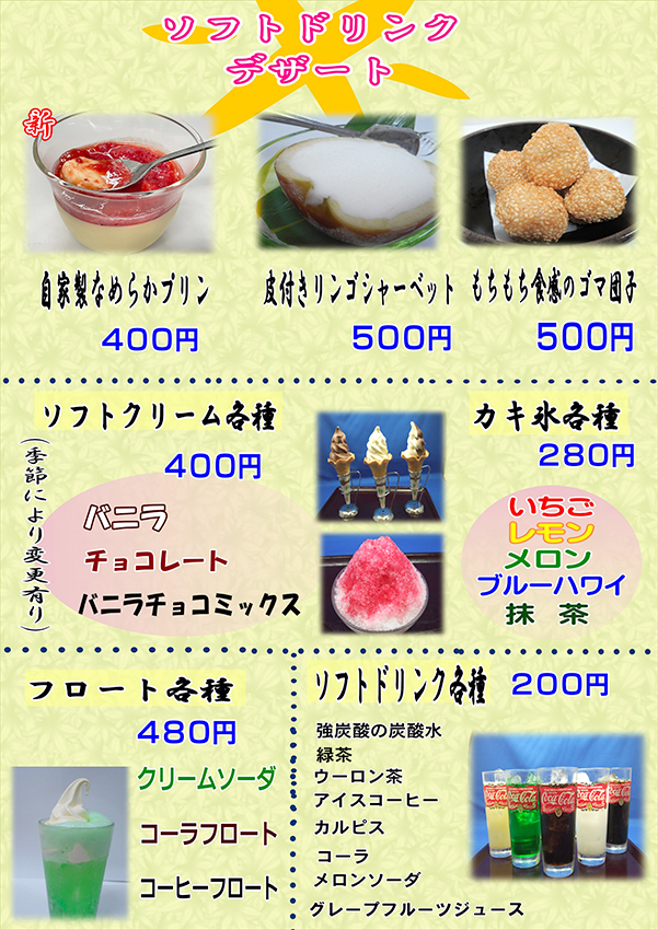 その他、アルコールやソフトドリンク、ソフトクリームなどもございます。