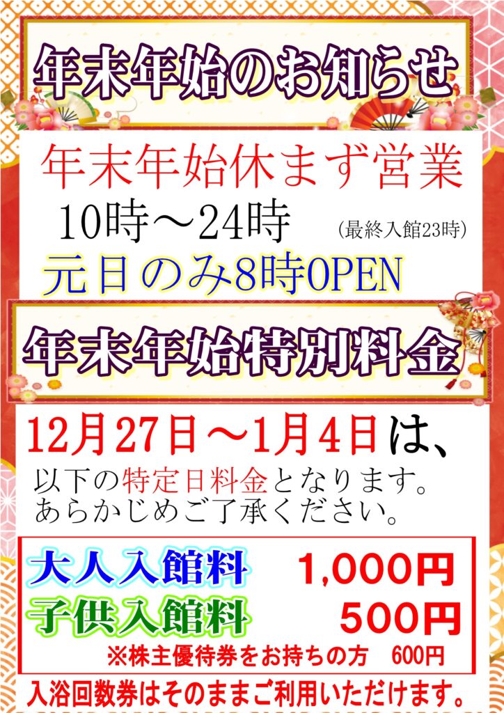 年末年始の営業について