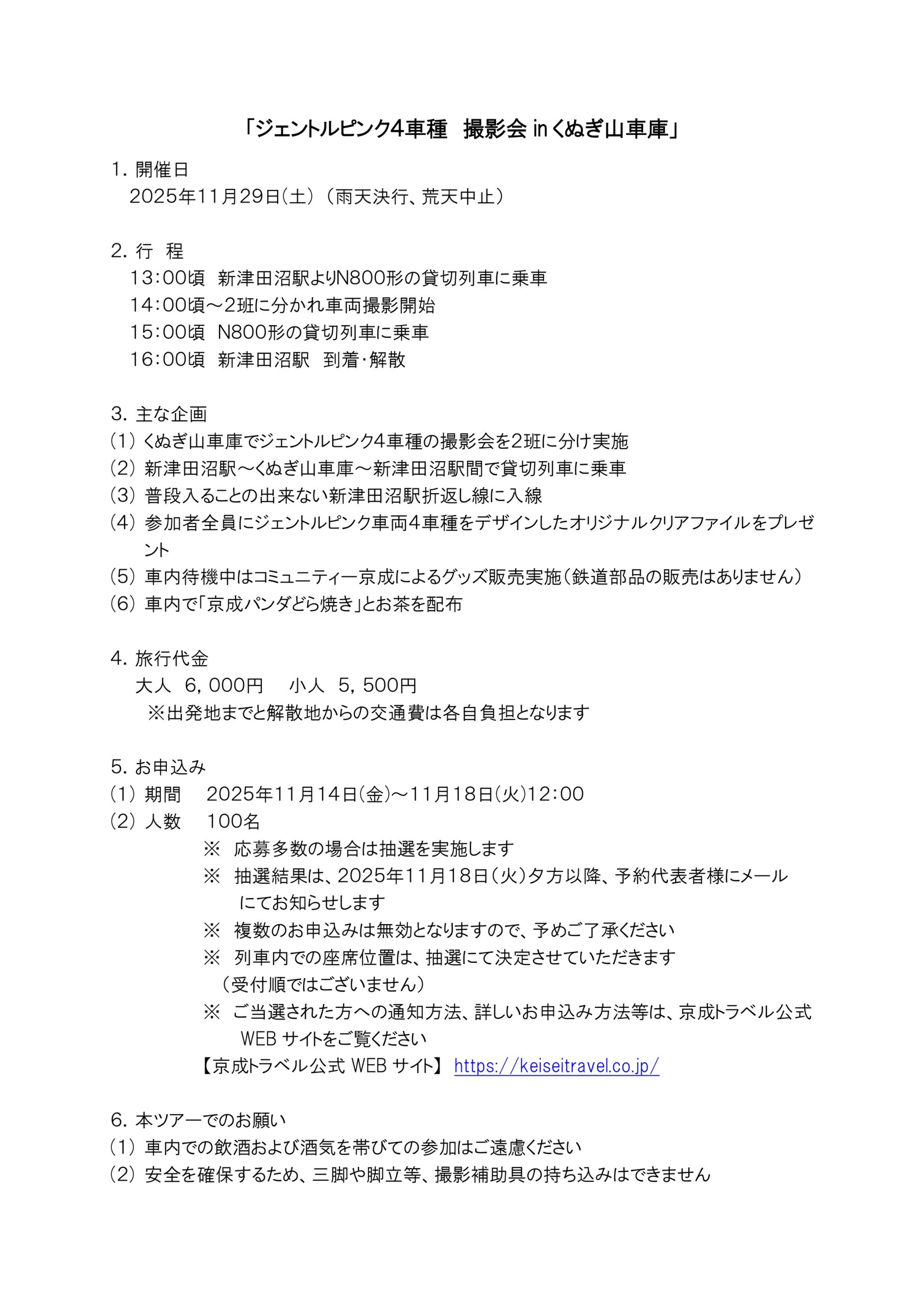 • 2025年11月29日(土) 新津田沼駅発 くぬぎ山車庫「ジェントルピンク4車種 撮影会inくぬぎ山車庫」